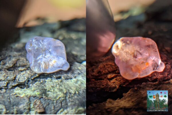 • Comment: Can be seen colour shift light Violet to light pink Under flourscent and incandescent light because of chromium.