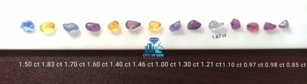 • Comment: may be expected to cut 0.90 ct to 0.30 ct range stones from these raw stones. Weight may vary with custom cuts .