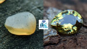 Natural sinhalite This rare green Sinhalite is found from Deniyaya Sri Lanka. It was 2.20 Cts in rough formation. We were able to get 1.27