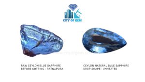 The raw stone was glass body alluvial gem with small rutile needles. We successfully removed them and got clean Unheated Drop shape blue sapphire with