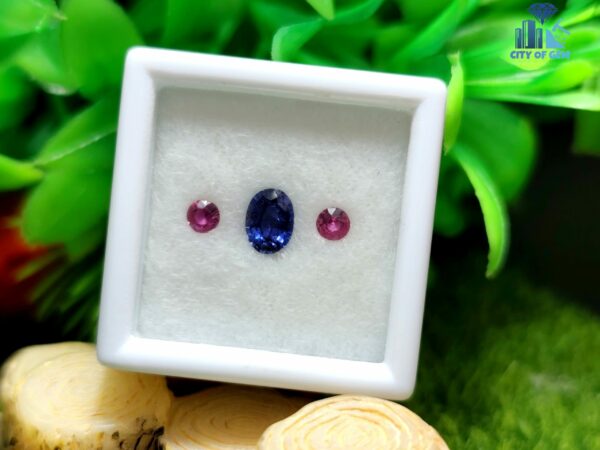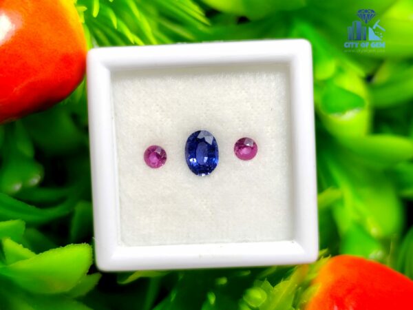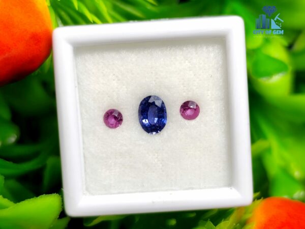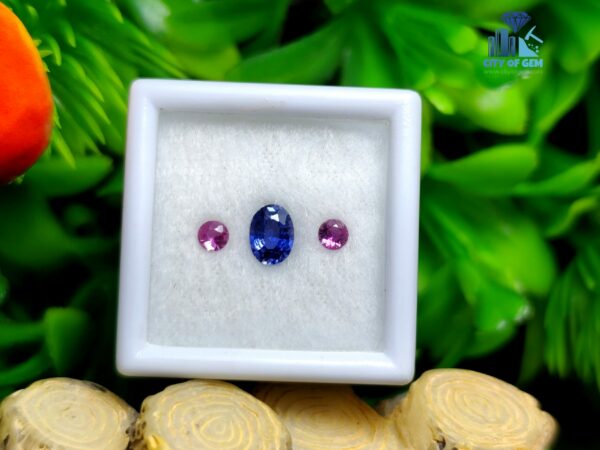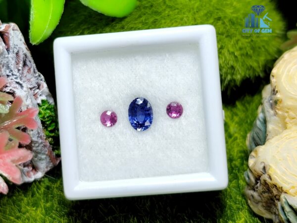 Elegance lies in harmony, and this three-piece natural sapphire set from Ratnapura, Sri Lanka captures that balance beautifully. The centerpiece is a stunning 0.51 ct natural blue sapphire, faceted in a classic oval cut with dimensions of 5.7 x 4.2 x 2.6 mm. On either side sits a matched pair of vibrant pink sapphires, each weighing 0.09 ct with round shapes measuring approximately 2.8 x 2.9 x 1.5 mm. Together, they form a color-coordinated trio perfect for custom ring or pendant designs.