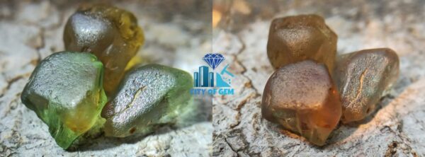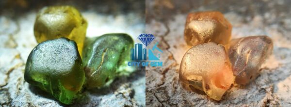 ✓ 2.08 Cts: Yellowish Green to orangy red