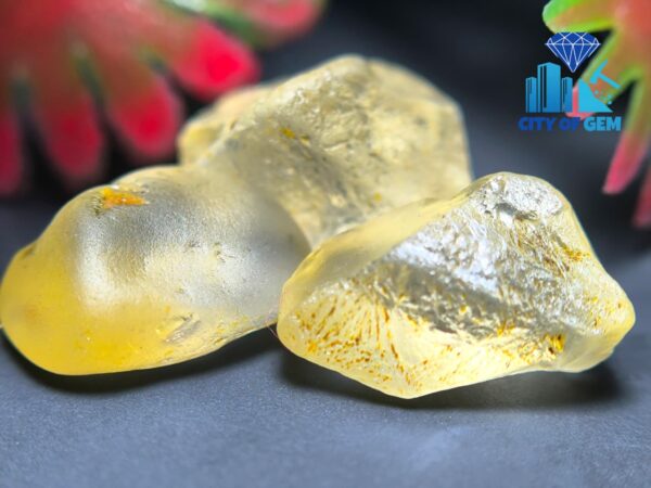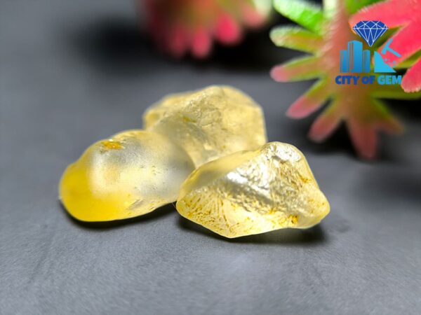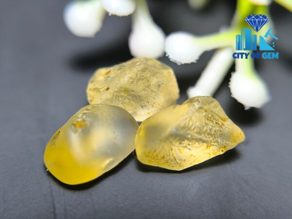 These roughs display bright yellow to light-yellow tones with a clean to VVS transparency level rarely seen in alluvial material. Their smooth, naturally water-polished surfaces show the gentle shaping created through years of movement in riverbeds, giving each stone an ideal starting form for skilled faceting. The internal purity, combined with their refined shapes, offers excellent face-up potential—perfect for cutters aiming to produce lively, high-value gemstones with optimal brilliance.