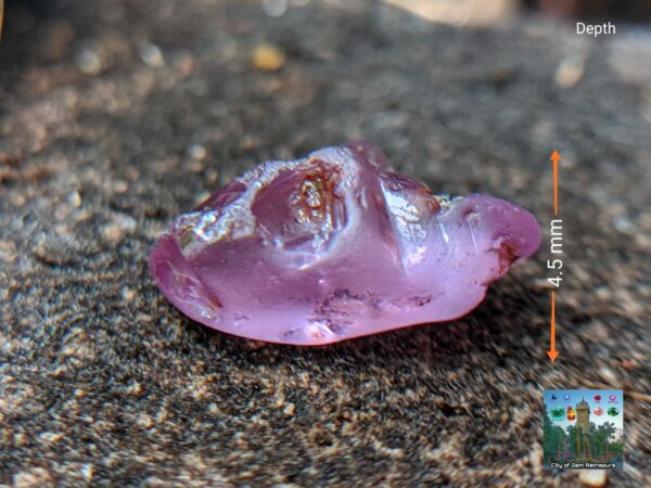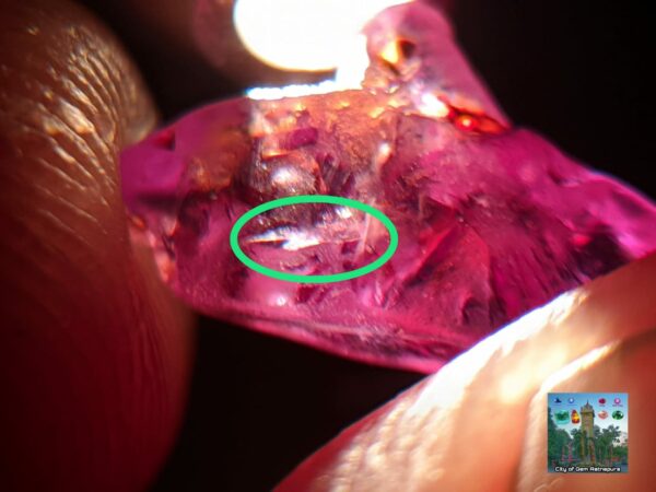 • Clarity: Visible Small Fracture in left side corner near the serface. Not deep inclusion. It can be removed when faceting and can get clean stone