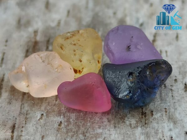 • Comment: May be expected to cut above 0.70 ct or 0.80 ct stone from blue sapphire with VS clarity/ [can be cut 2 stones] above 0.50 ct or 0.60 ct stone from right side and above 0.20 ct or 0.30 ct from left side from lavender colour stone, because of center visible fracture/ above 0.90 ct or 1.00 ct from yellow sapphire with SI clarity (tiny feather) or can cut above 0.50 or 0.70 ct with VS clarity/ above 0.60 0r 0.70 ct from Peach sapphire with VS clarity/ above 0.50 ct or 0.60 ct from Orangy Pink padparadscha with VVS clarity.