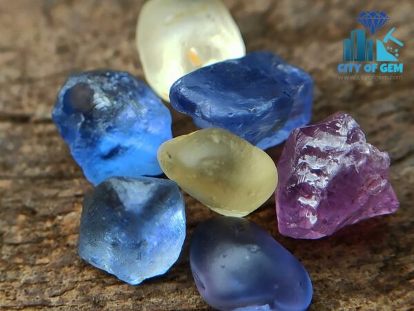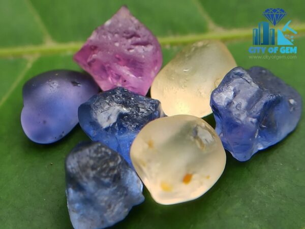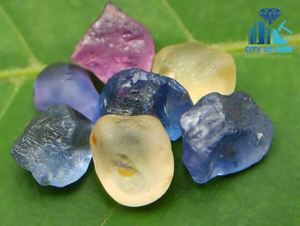 • Comment: May be expected to cut above 0.50 ct or 0.60 Cts clean stone from 1.18 ct yellow/ above 0.60 ct or 0.70 ct clean stone from 1.28 cts yellow stone/ above 0.50 ct or 0.60 ct clean stone from 1.18 ct blue/ above 0.60 ct or 0.70 ct SI clarity stone from 1.27 pink stone/ above 0.40 ct or 0.50 ct clean stone from 1.00 ct blue/ above 0.40 ct or 0.50 ct clean stone from 0.92 ct blue/ 0.30 ct or 0.40 ct from purple stone. Weight may vary with custom cuts.