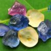 • Comment: May be expected to cut above 0.50 ct or 0.60 Cts clean stone from 1.18 ct yellow/ above 0.60 ct or 0.70 ct clean stone from 1.28 cts yellow stone/ above 0.50 ct or 0.60 ct clean stone from 1.18 ct blue/ above 0.60 ct or 0.70 ct SI clarity stone from 1.27 pink stone/ above 0.40 ct or 0.50 ct clean stone from 1.00 ct blue/ above 0.40 ct or 0.50 ct clean stone from 0.92 ct blue/ 0.30 ct or 0.40 ct from purple stone. Weight may vary with custom cuts.