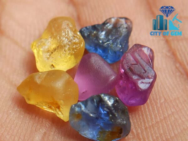 • Comment: May be expected to cut 1.00 ct to 1.25 ct range from 2.56 ct yellow/ 0.60 ct to 0.80 range from 1.80 ct blue/ 0.50 ct to 0.70 ct range from 1.84 ct yellow/ 0.50 ct to 0.80 ct range from 1.70 ct pink/ 0.50 ct to 0.70 ct range from 1.37 ct pink/ 0.40 ct to 0.55 ct range from 1.07 ct blue. Weight may vary with custom cuts.