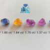 • Comment: May be expected to cut 1.00 ct to 1.25 ct range from 2.56 ct yellow/ 0.60 ct to 0.80 range from 1.80 ct blue/ 0.50 ct to 0.70 ct range from 1.84 ct yellow/ 0.50 ct to 0.80 ct range from 1.70 ct pink/ 0.50 ct to 0.70 ct range from 1.37 ct pink/ 0.40 ct to 0.55 ct range from 1.07 ct blue. Weight may vary with custom cuts.