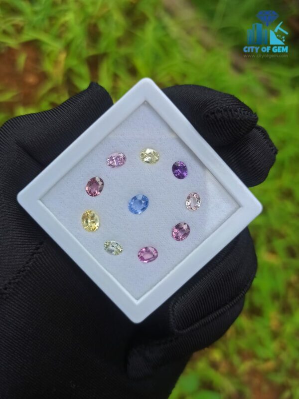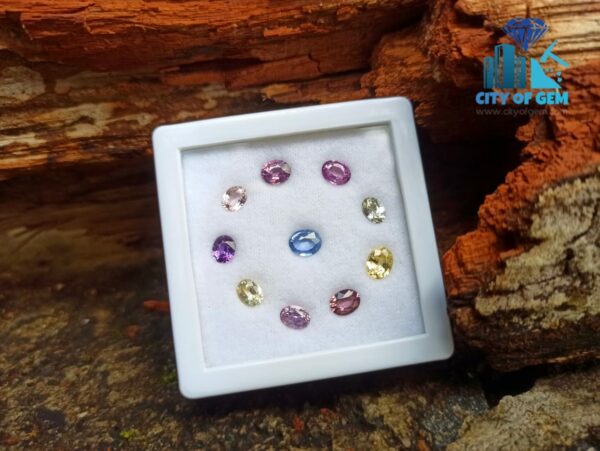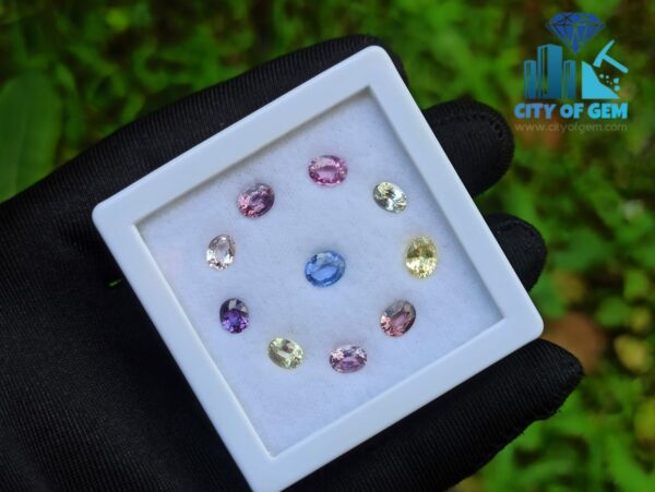 • Comment: All commercial grade gemstones with SI, VS, VVS, Loup clean clarity. All oval shape stones. Color shifting sapphire is changing purple to redish pink.