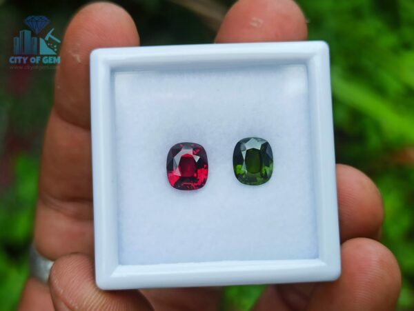 Green & Red – Natural Green Zircon and Red Garnet Couple from Sri Lanka