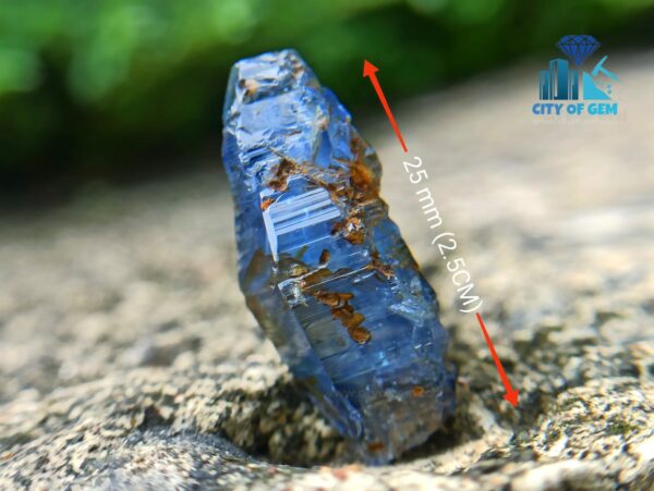 Hailing from the picturesque village of Kataragama in Sri Lanka 🇱🇰, this singular crystal weighs an impressive 21.56 Ct. Its measurements, at 25 mm x 10.5 x 9.5 mm, showcase its substantial presence.