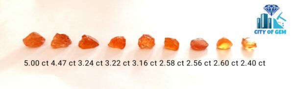 • Comment: May be expected to cut above 2 ct from 3 stones, above 1 to 1.50 ct range from other stones. Weight may vary with custom cuts.